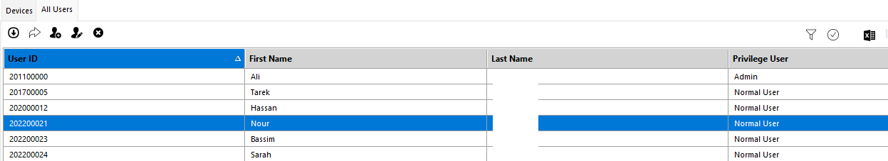 Users in Attendance Devices can be managed by the connected user.