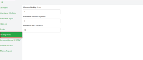 Minimum, maximum and normal working daily hours that reflects in the attendance.