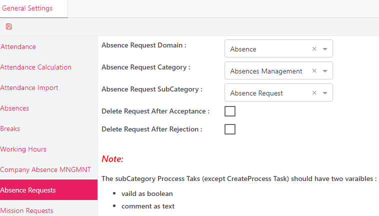Section - Company Absence Management:
