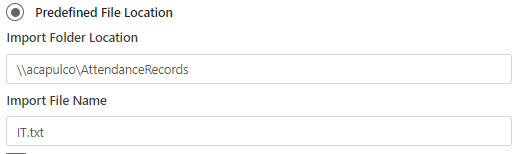 Predefined file location : If checked the file can be imported by two ways :