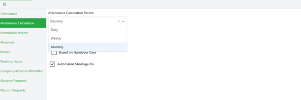 Drop down containing calculation periods: Monthly, Weekly, or Daily.