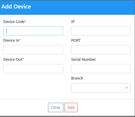The user add a device code , In, out IP , Port and serial number.