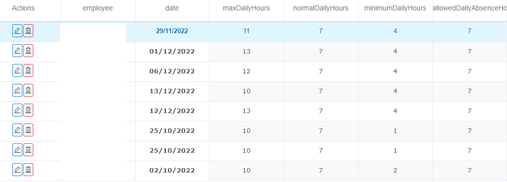 In this section, the user adds the attendance exceptions that do not suit the settings but are approved for this particular record in this particular time. This step must be done before the validation: