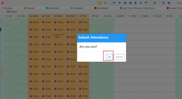 After import the attendance record the responsible user will do the following steps before submit the data: