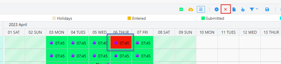 The button (X) represents the rejected data view and the color red represent the rejected record.