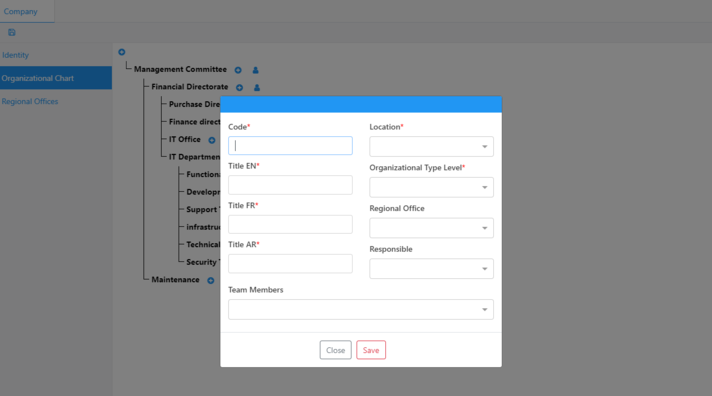Choose the organizational level (This field is synced with the Organizational Chart tab).