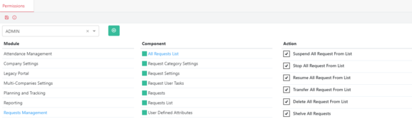 Permissions (Module, Component, Action)