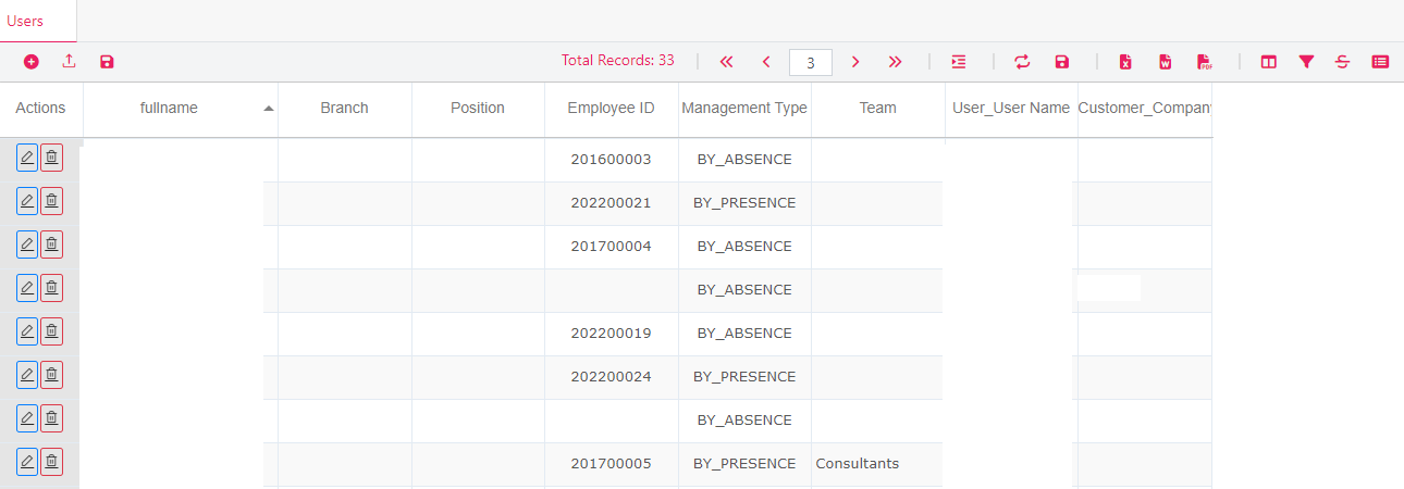 To edit a user click on the edit button under Actions, modify fields from any tab then click save