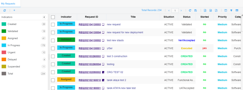 Total Records: represents the total number of records available in the My Requests page